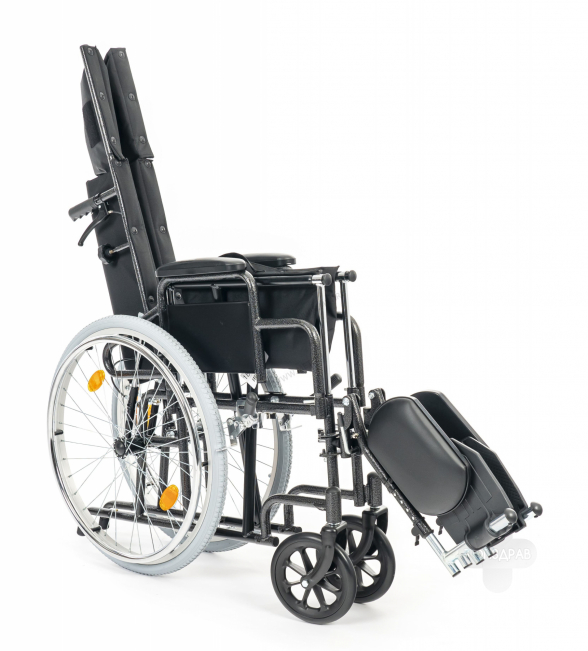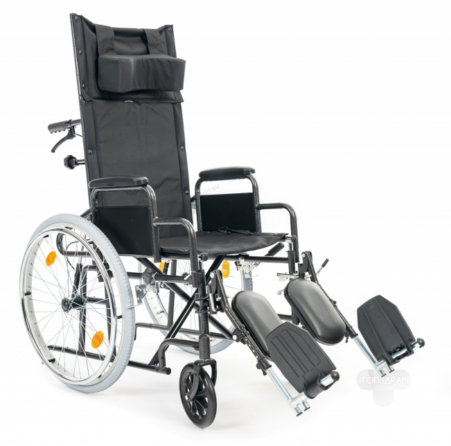 Кресло-коляска с удлинённой, опускающейся в горизонталь спинкой и поднимающимися ортопедическими подножками